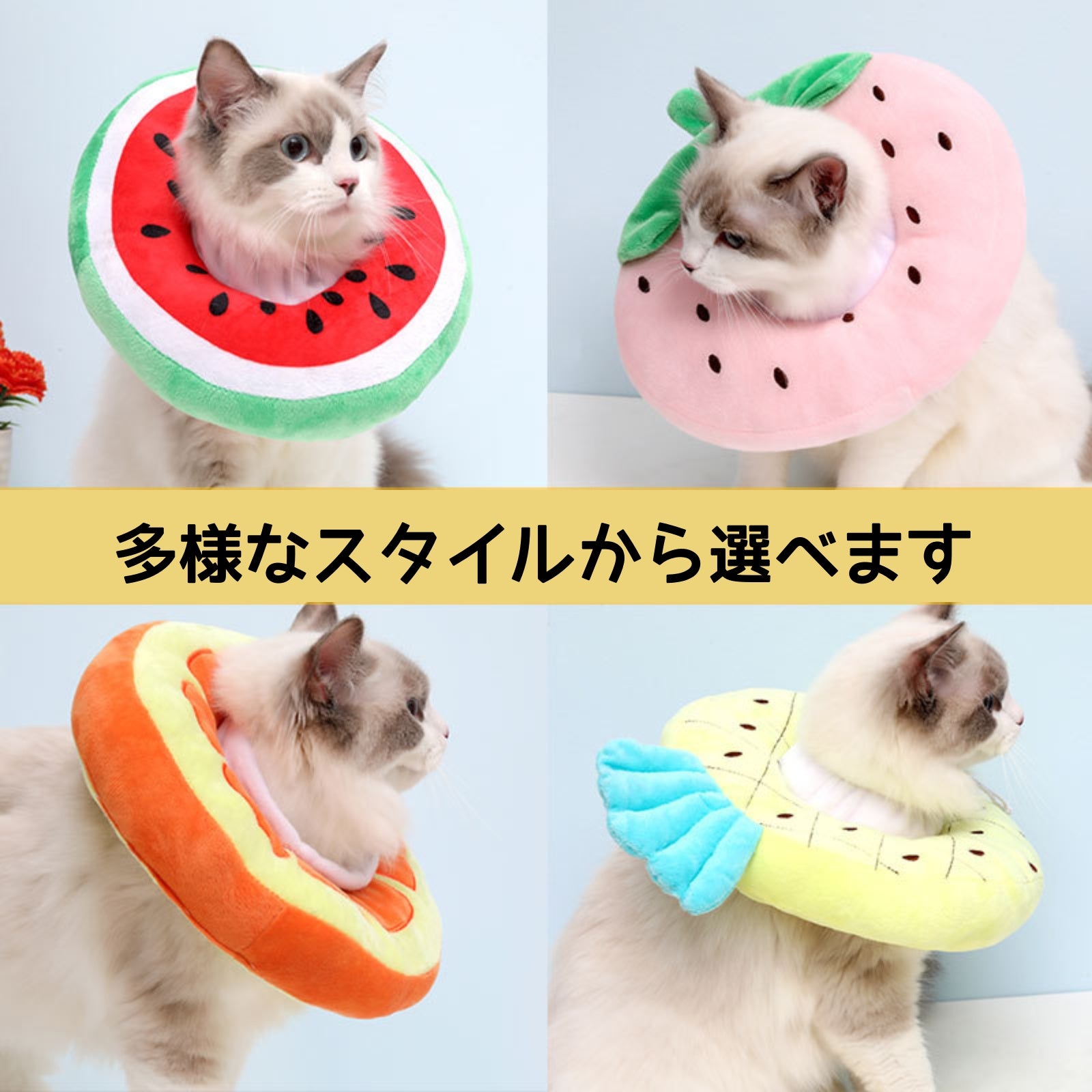エリザベスカラー 猫用フルーツヘッドセット ペット用首輪 耻辱カラー 防舔噛去去勢ペット用品