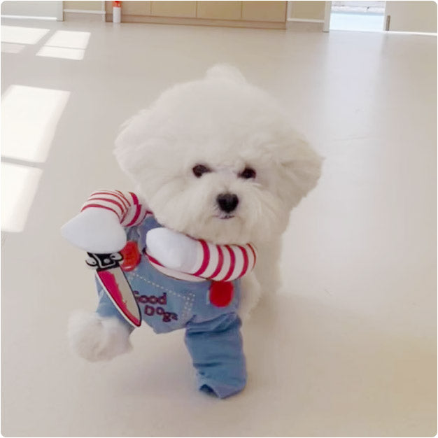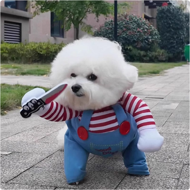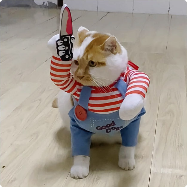 ネットで人気のペット用衣装。ビビ、金毛、ボメラニア、柴犬、コーギー、テディ、猫などに適した、面白い「ナイフを持った」風変身衣装。
