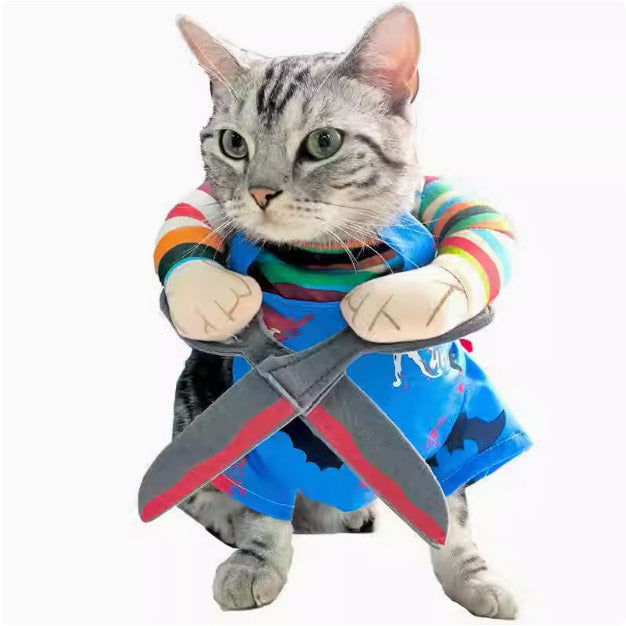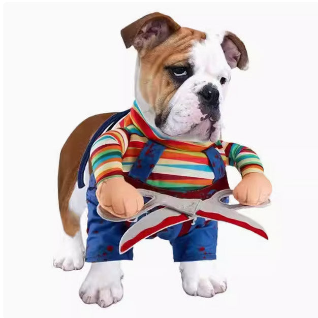 ネット人気新モデルの犬用ギャグ衣装 「立体ハロウィン ハサミ持った立ち姿コスチューム」 猫用にも展開されたオカシイデザイン