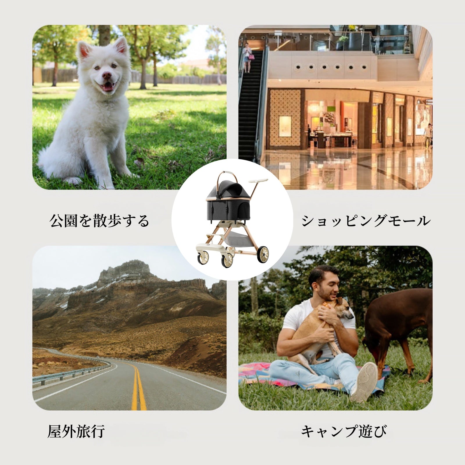 ペット用カート アルミ合金 軽量 ワンタッチ折りたたみ 分離型 猫犬用 外出 ハンドル付きカート
