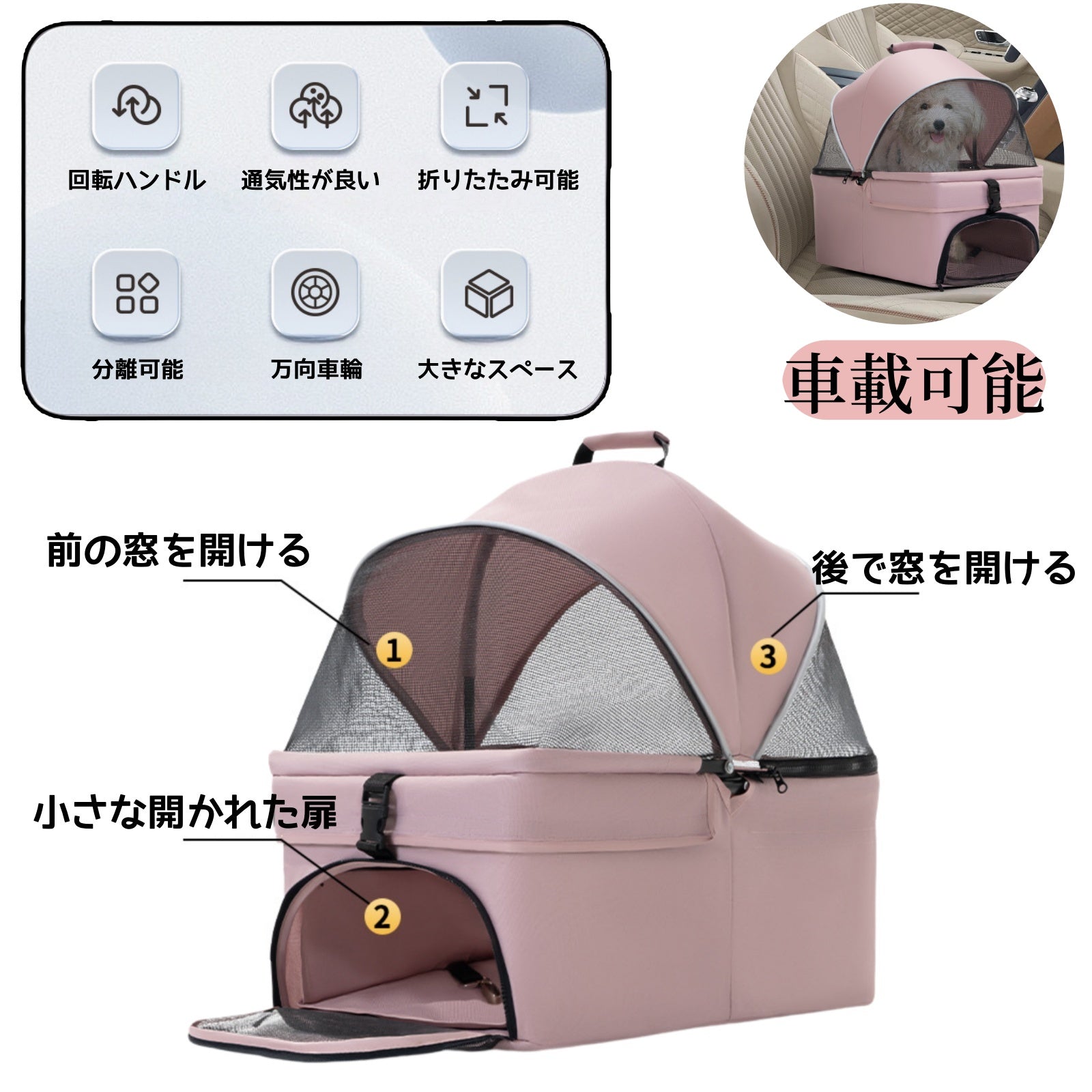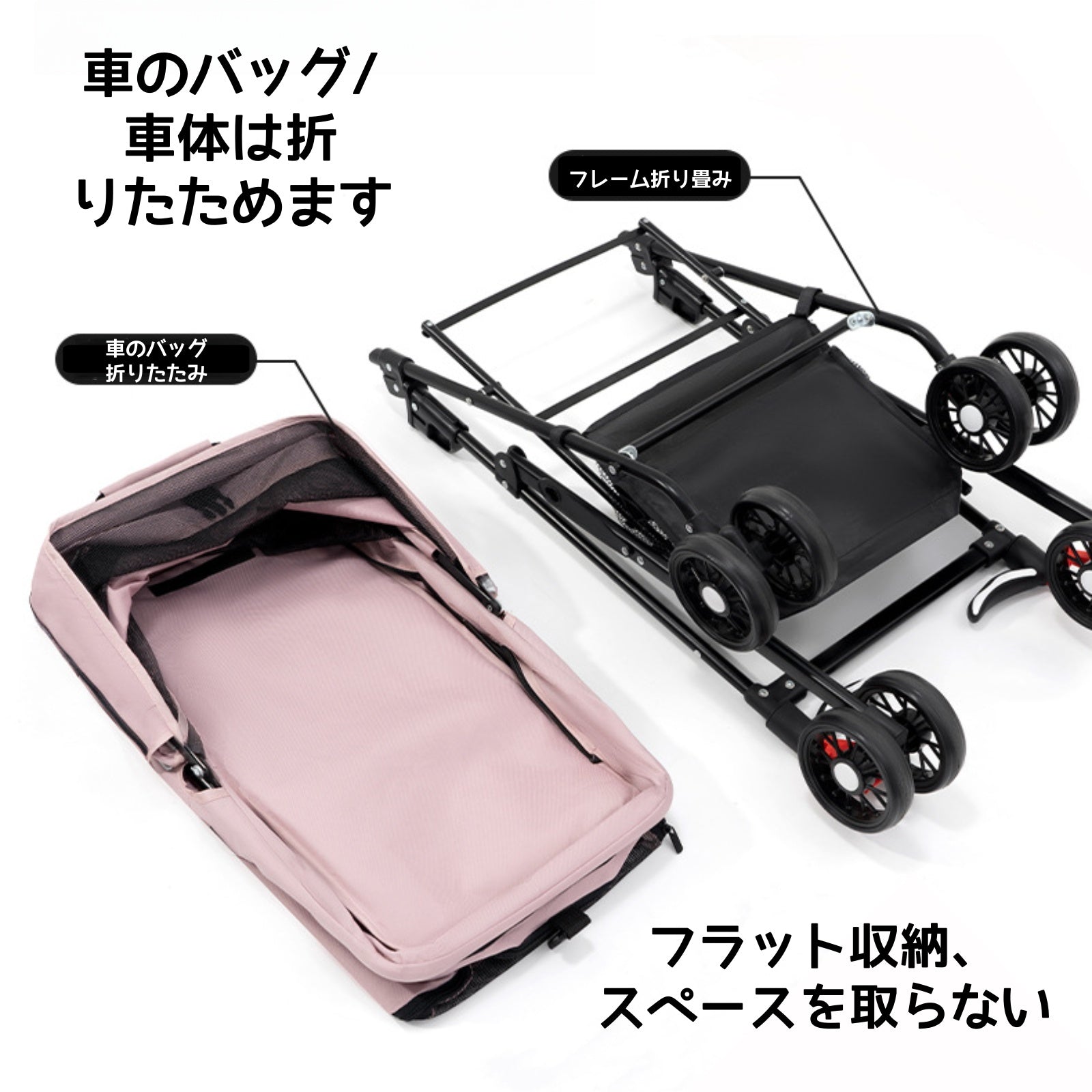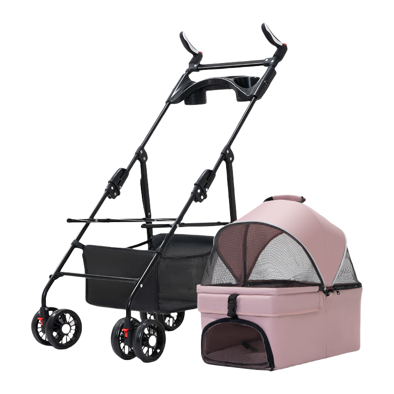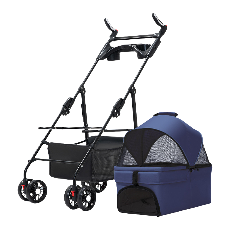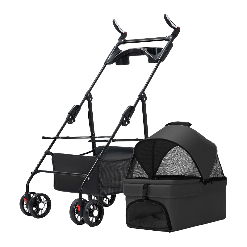 ペット用カート、犬や猫に便利な折りたたみ式、外出用に分離できるペット小型カート、散歩用の分離可能な持ち手付きカゴ