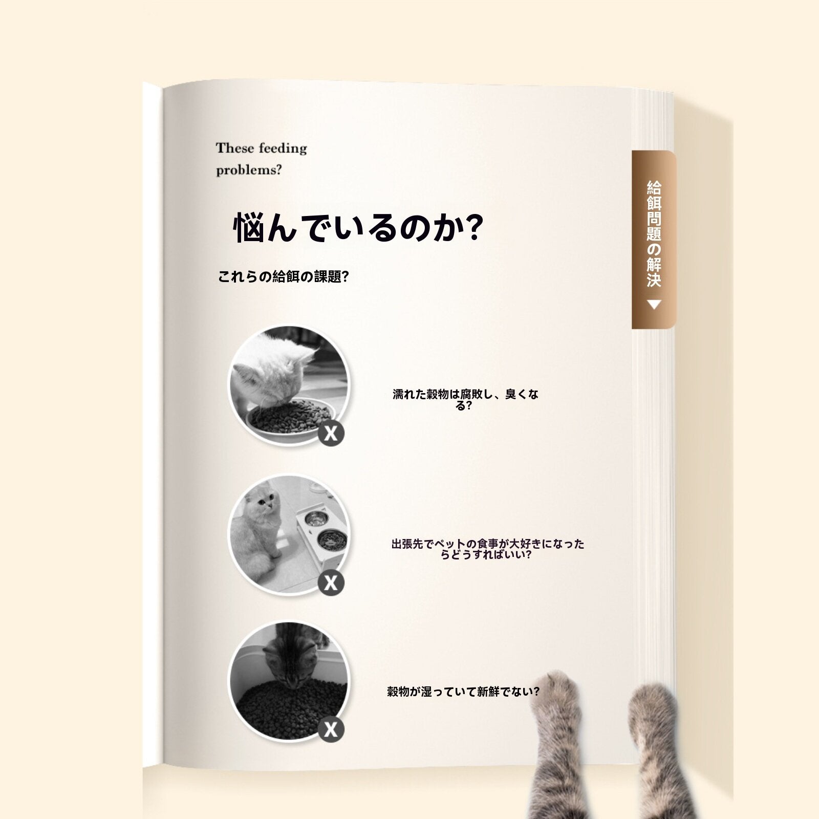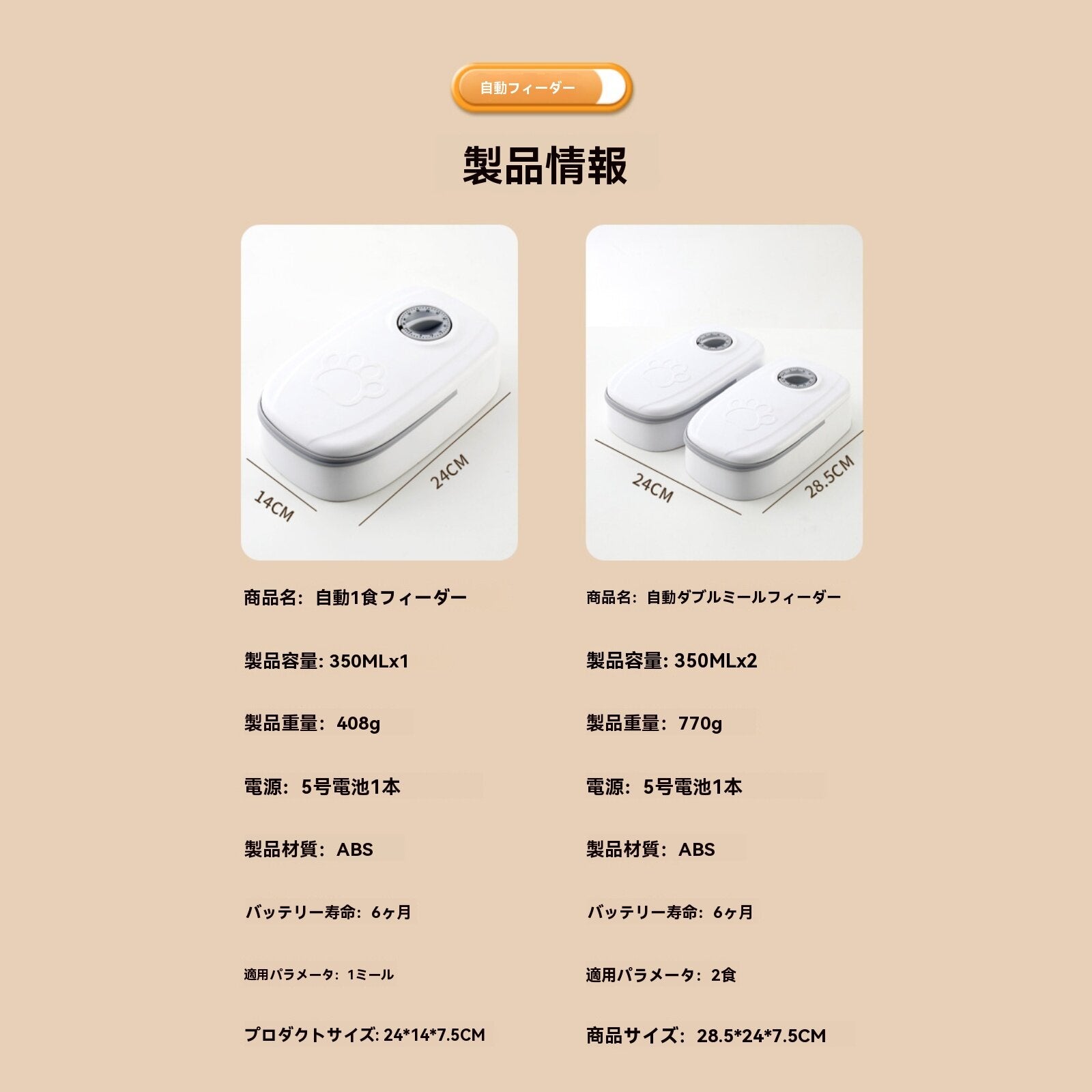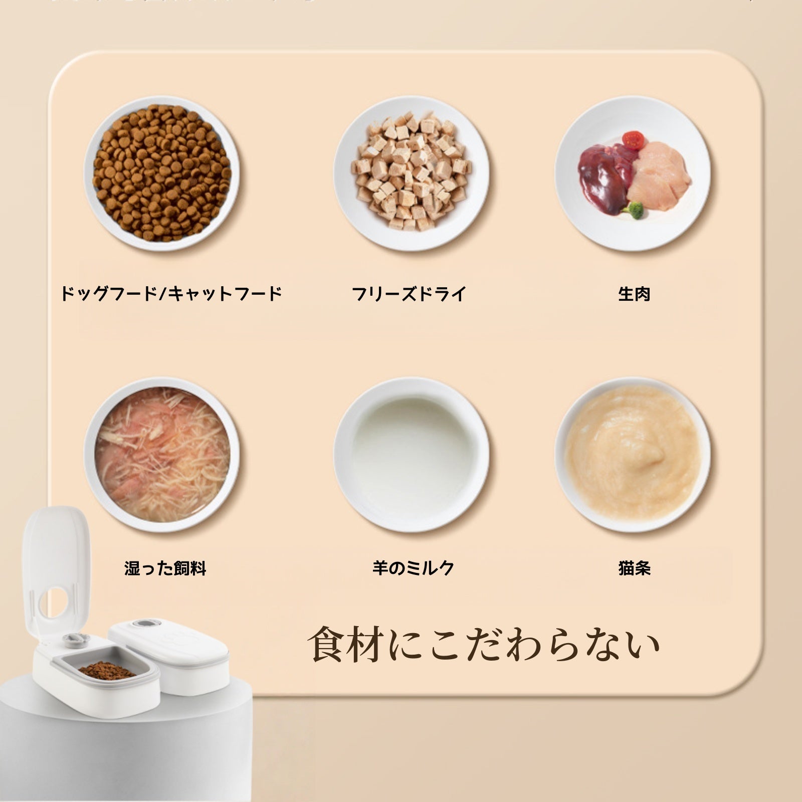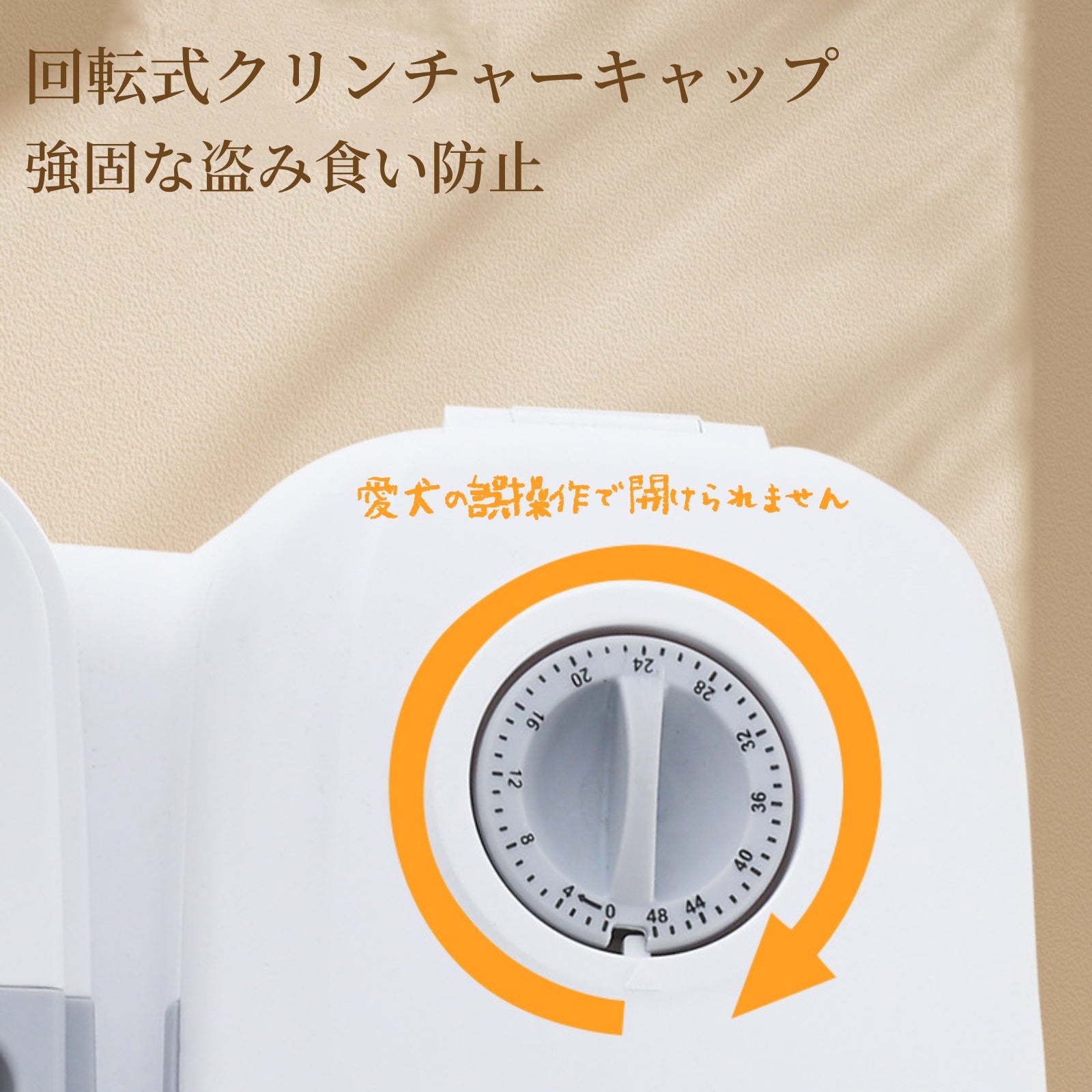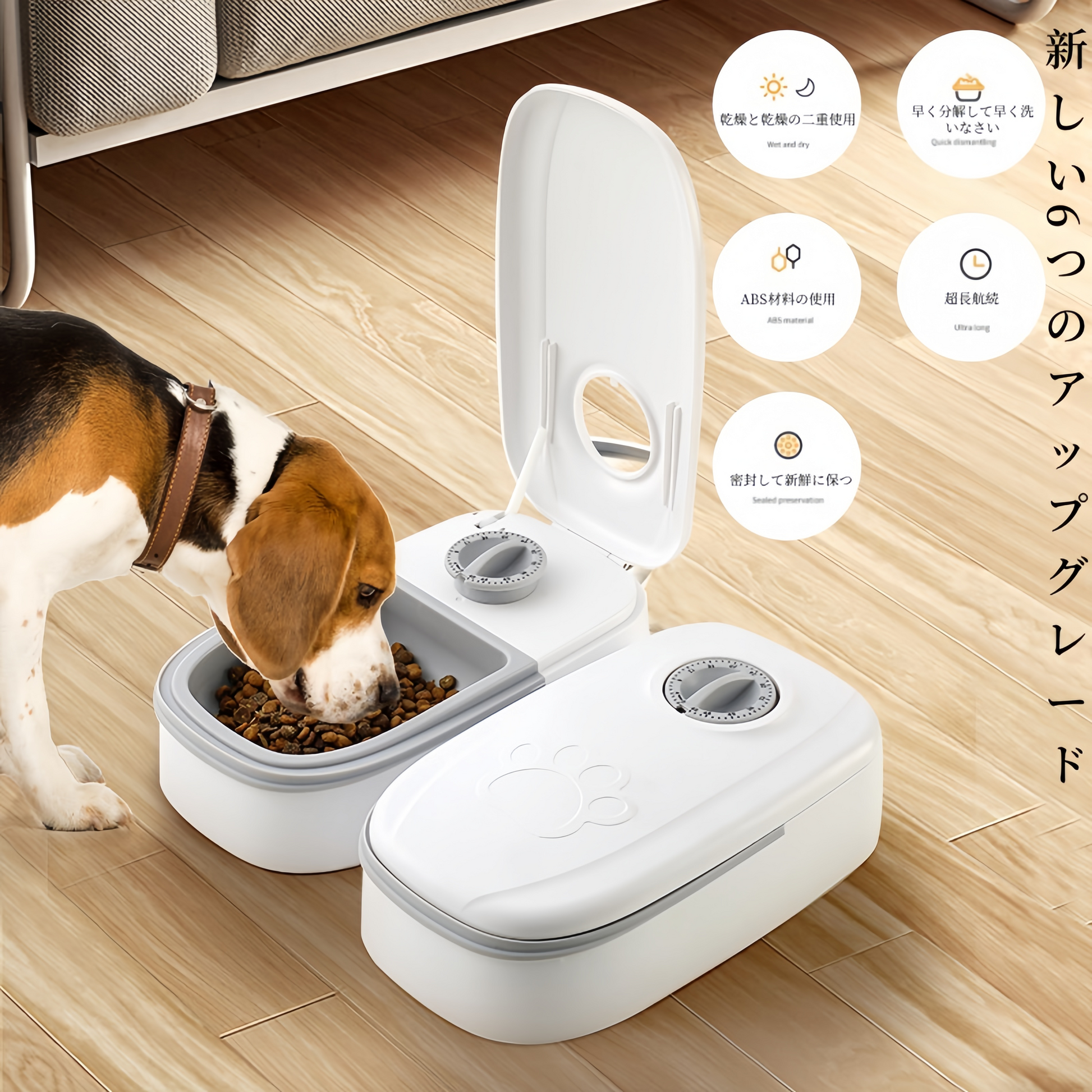 - 最大 2.5kg の乾燥飼料を収納(小型犬・猫で 5~7 日分)