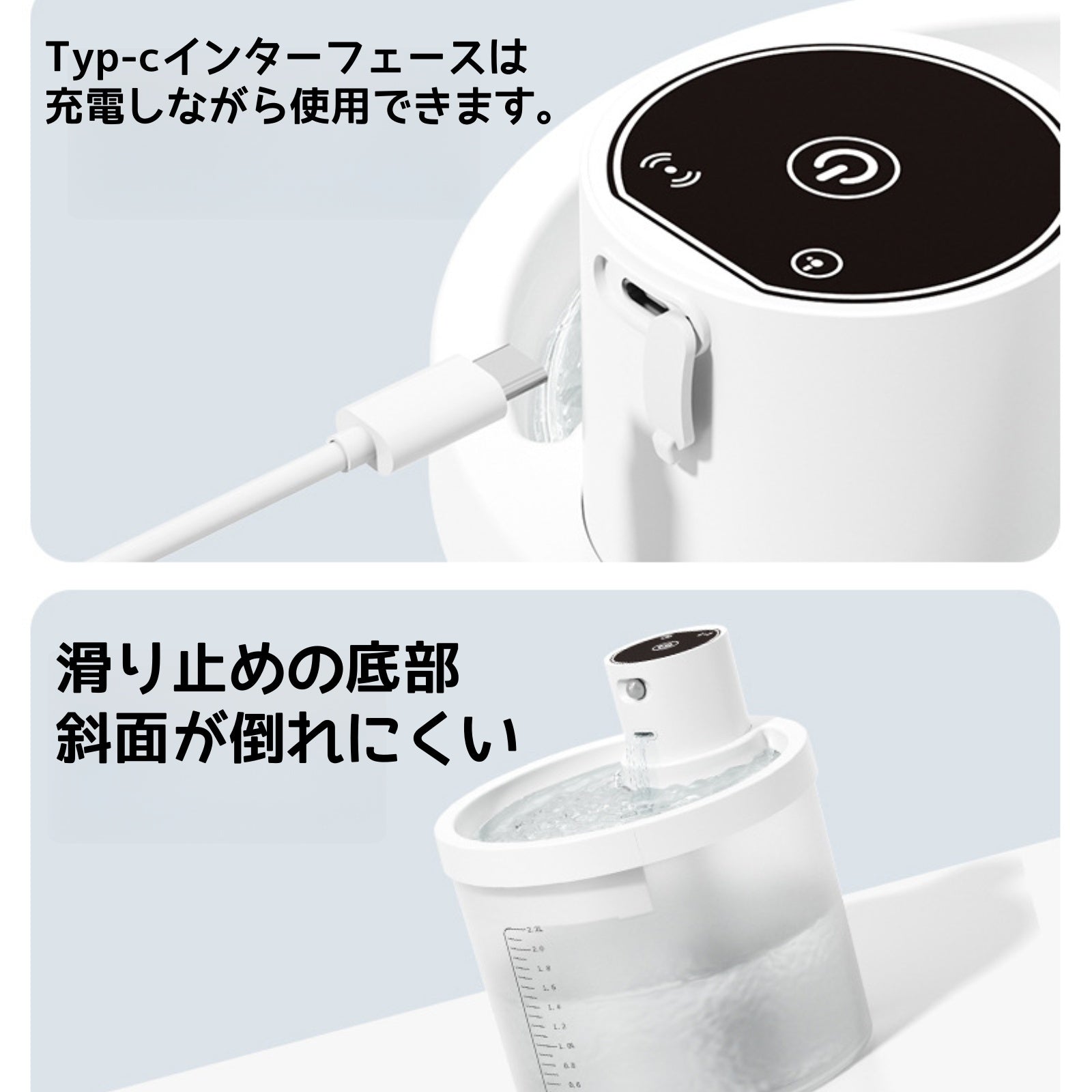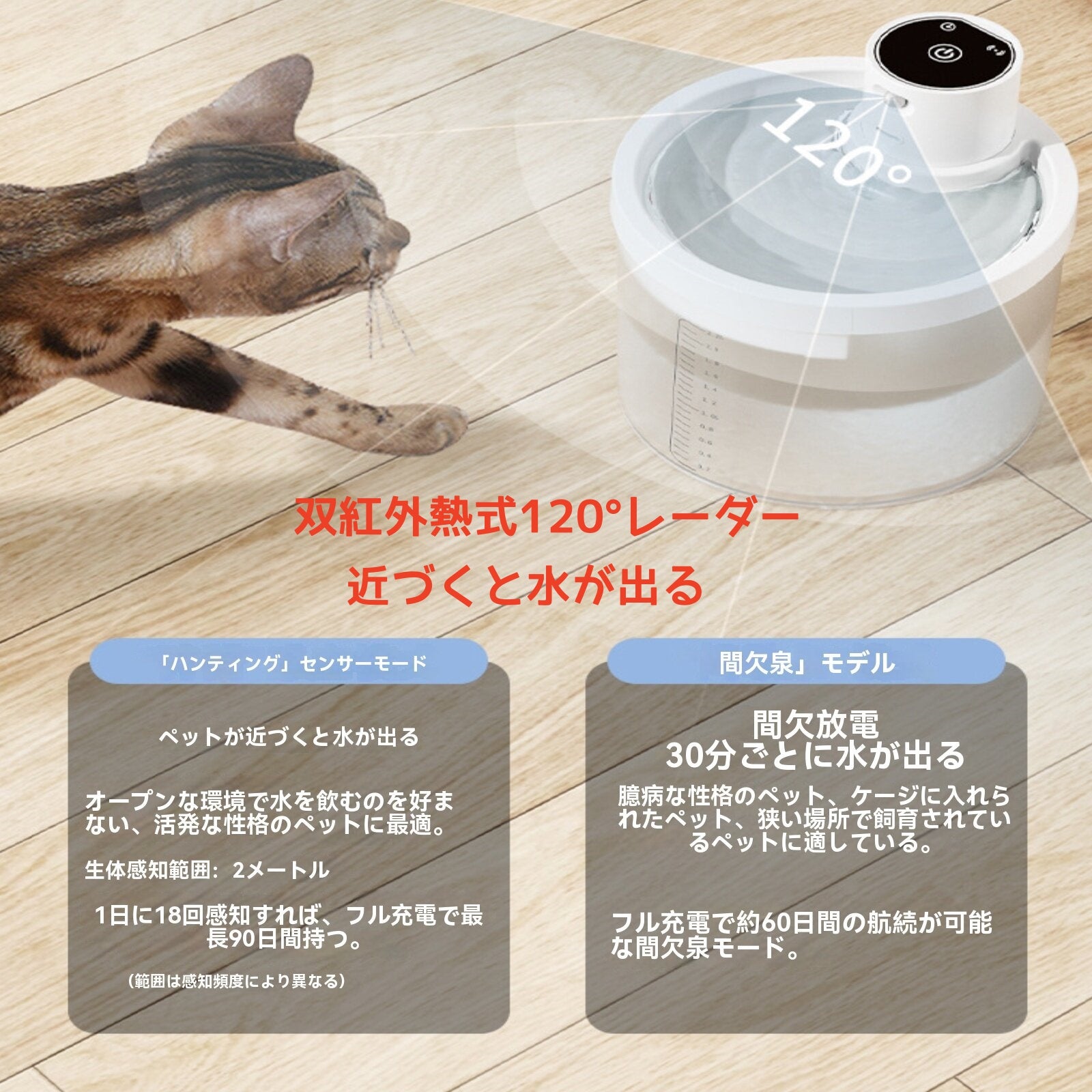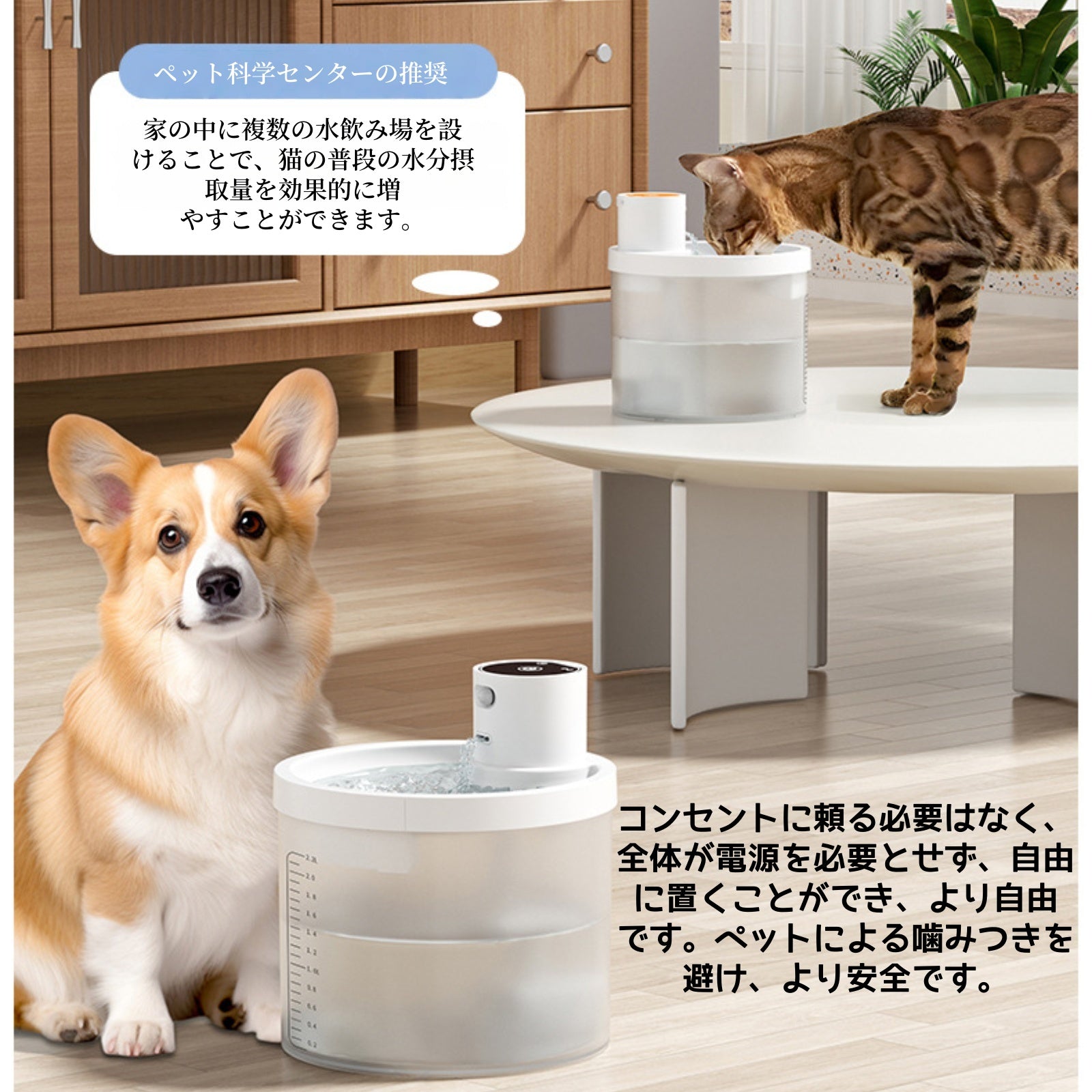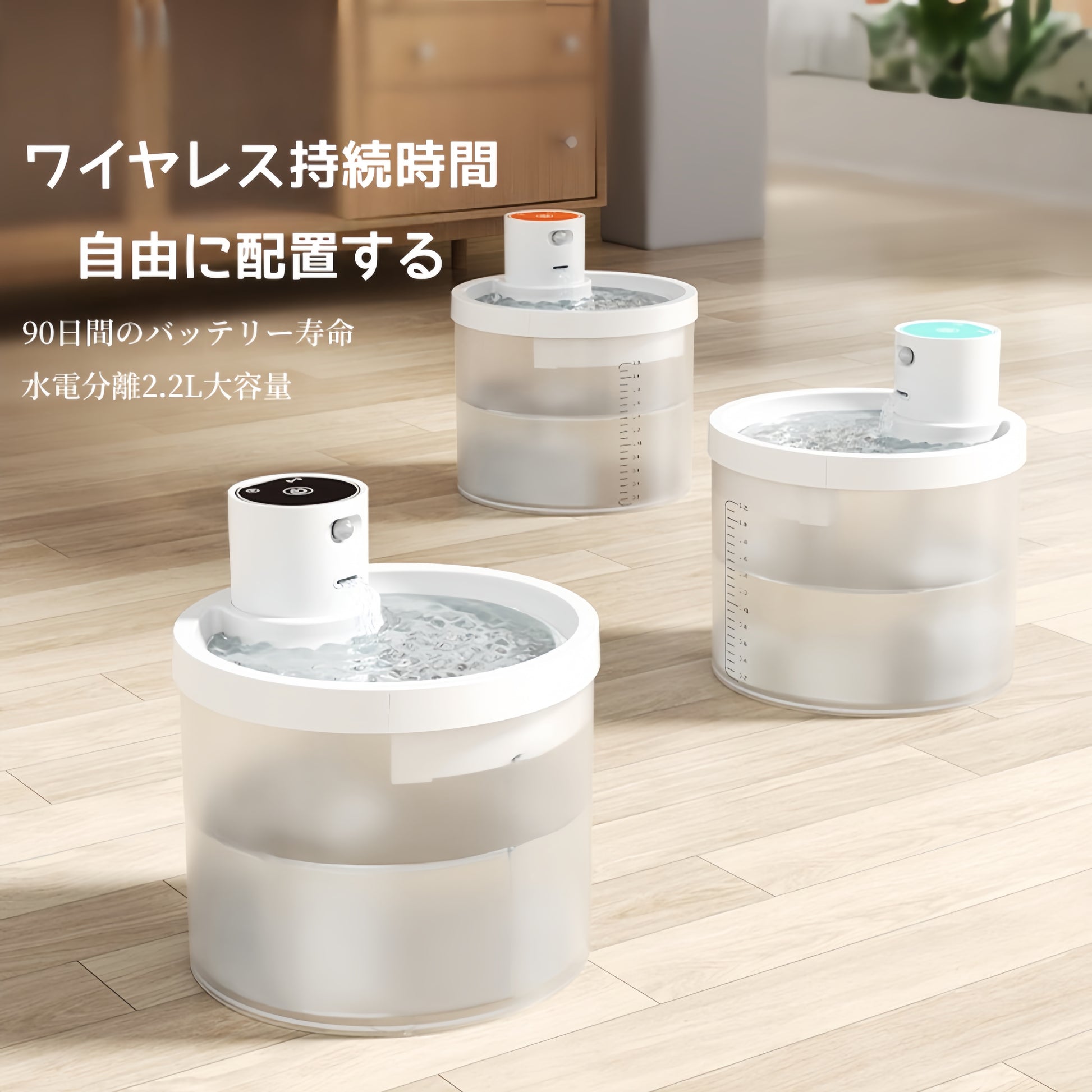 ✨ 大容量タンク:最大○L(例:2L)の貯水スペースで、長時間の留守番時にも心配なし。透明ケースで水位確認が簡単。