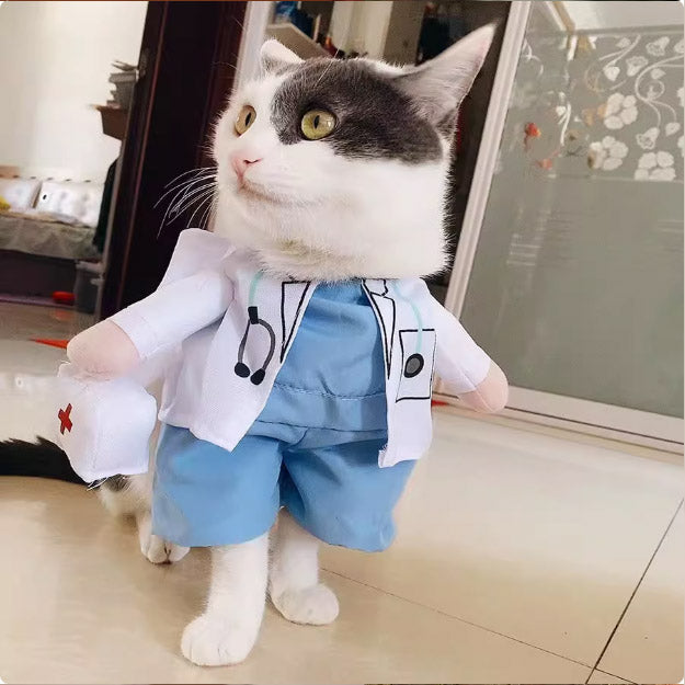 可愛くて面白くておかしいペット用の衣装。ネコや小型犬用の、秋用の衣装で、ネット(抖音)で人気の看護婦風や医者風の変身衣装。