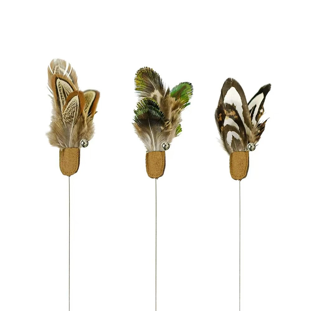 小さな蝶の競技レベルの猫じゃらし、延長されたスチールワイヤーと羽毛のおもちゃ