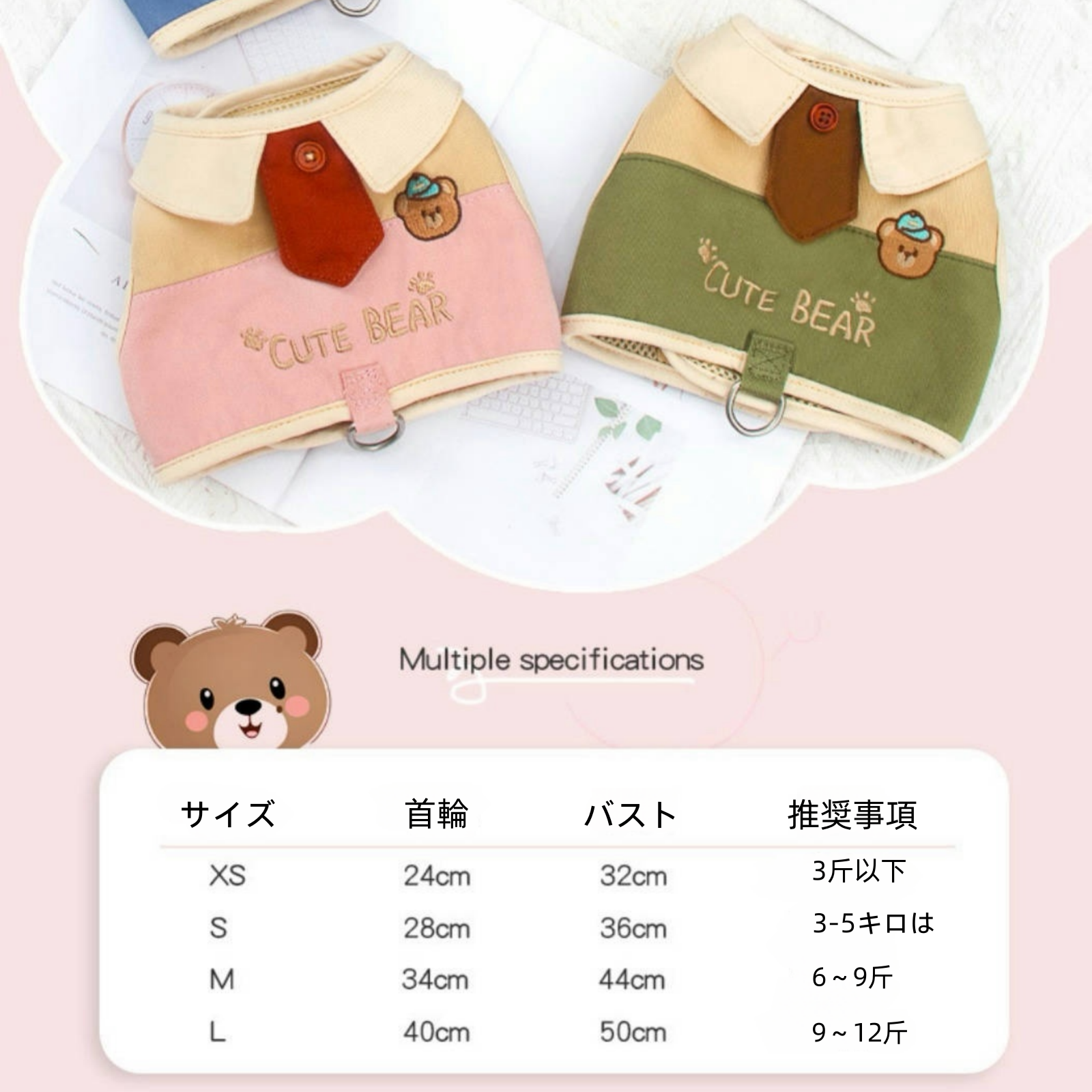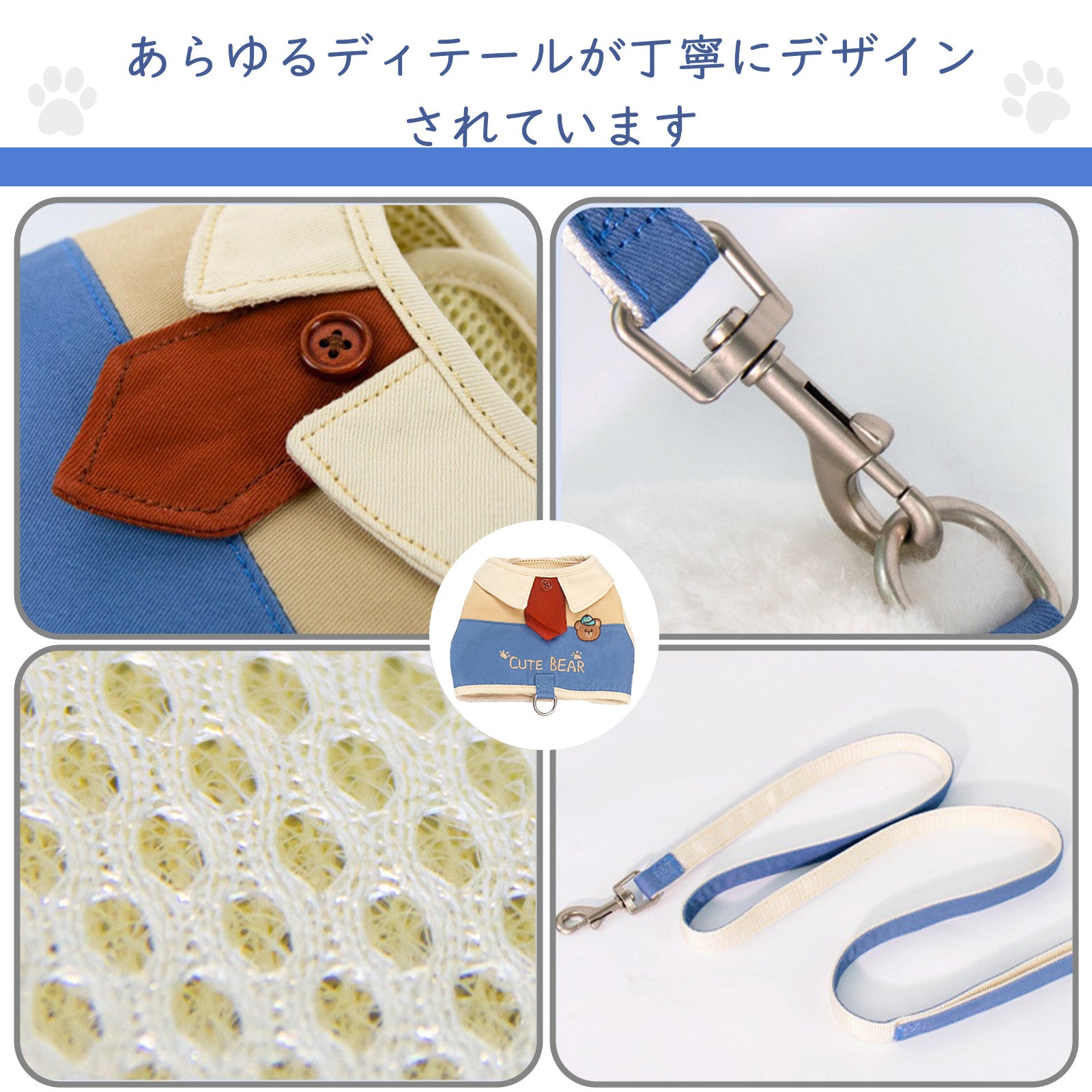 犬猫用ハーネス型リード、小型犬用ビションフリーゼ用、テディベア用キャットリード