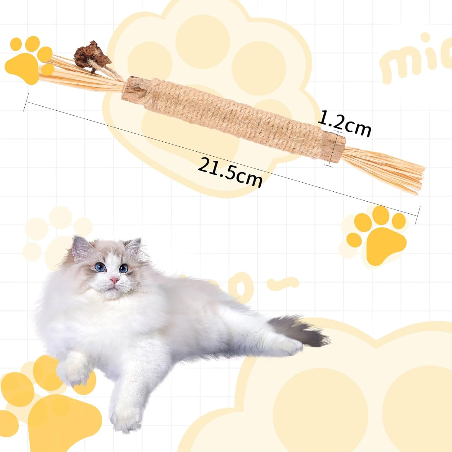 天然のラフィアグラス、ジュートロープ、シルバーバインの果物や木などの天然素材で作られたこのおもちゃは、猫が噛んでも安全です。 その強い銀色の香りと風味で、猫の本能を刺激し、抵抗できない噛み物になります。