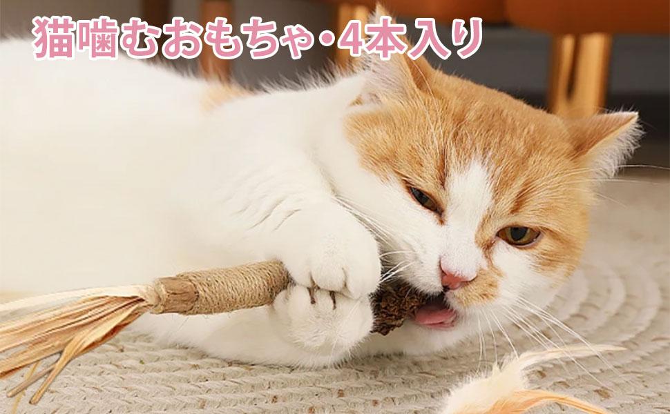 猫の噛むおもちゃ、歯のクリーニング、グラインドスティック、マタタビ、天然木、ヘンプロープ、4パック、天然で安全、噛むスティック、歯科クリーニング、非毒性、減量、運動サプリメント、ストレス解消