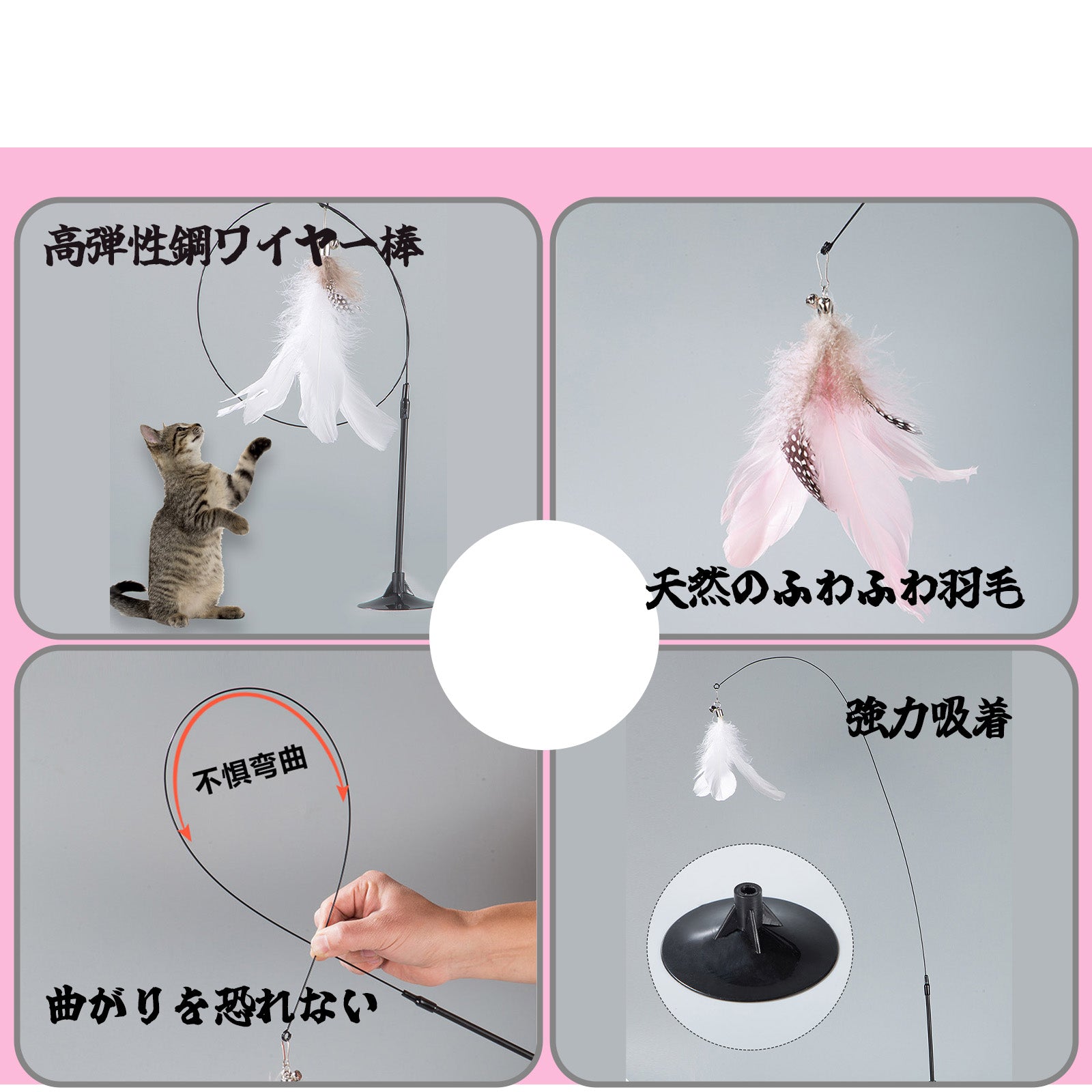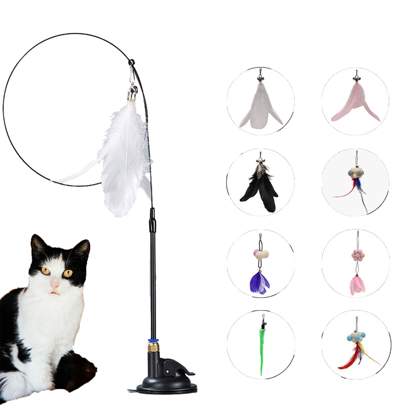 猫用インタラクティブおもちゃ 羽毛&鈴付き猫じゃらし伸縮棒強力吸盤付き交換可能ヘッドパズル噛みつきおもちゃ子猫やペット用の楽しく耐久性のある玩具
