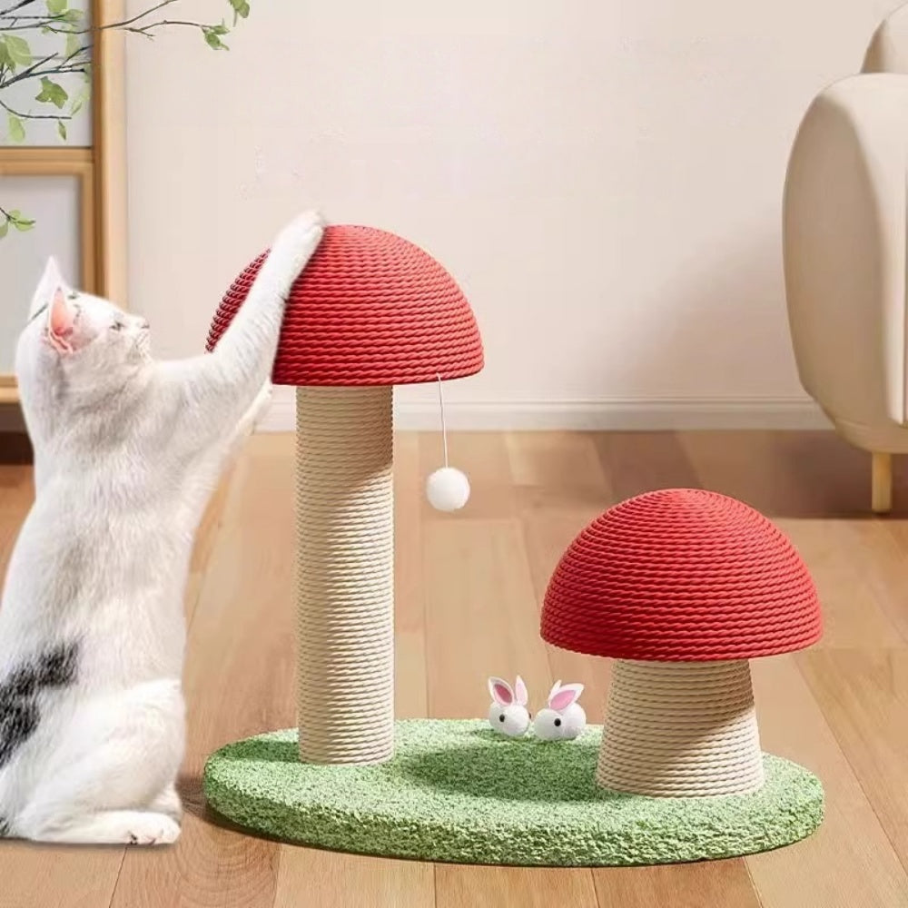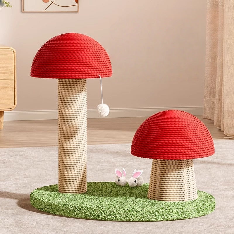 紅色のきのこ型のキャットタワー、麻紐製の小型爪研ぎ柱です。耐久性があり、粉が落ちません。猫のための爪研ぎおもちゃ、キャットグラブボードです。