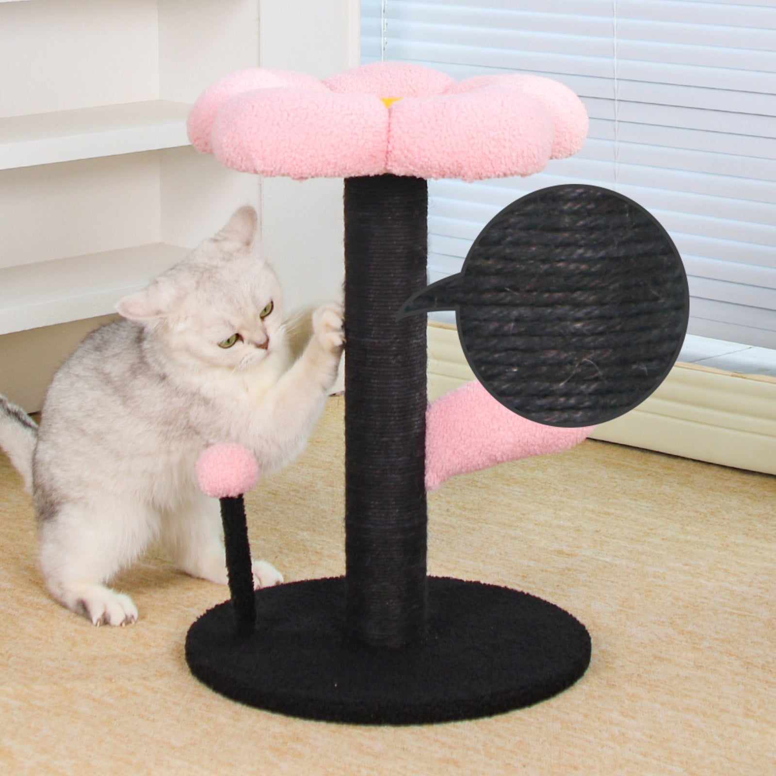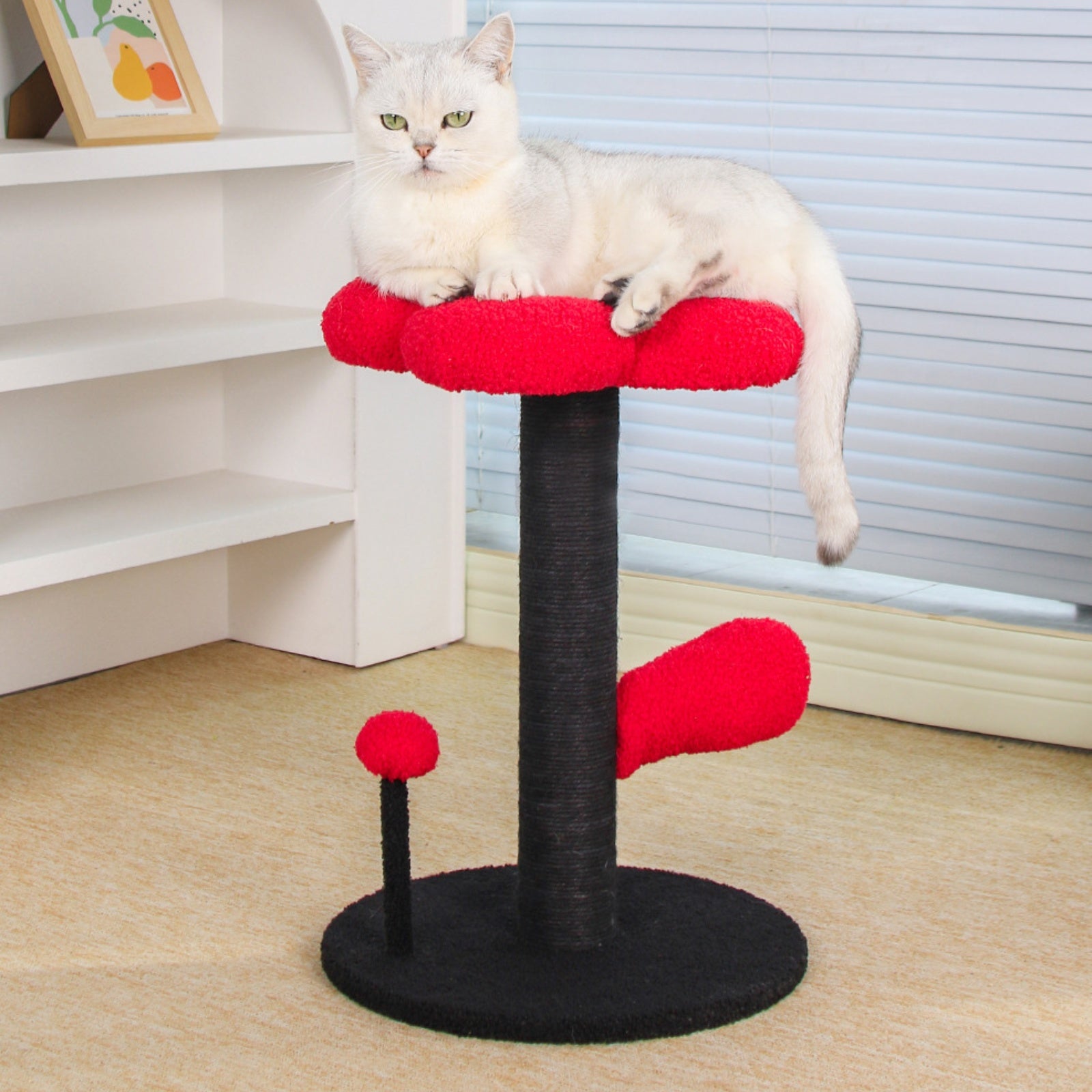 高級な花柄のキャットタワー、飛び跳ねるボールと一体化した麻の爪とぎ柱付き